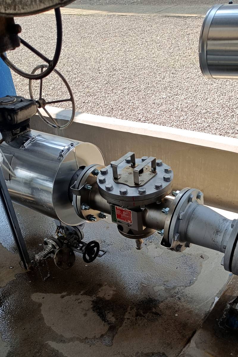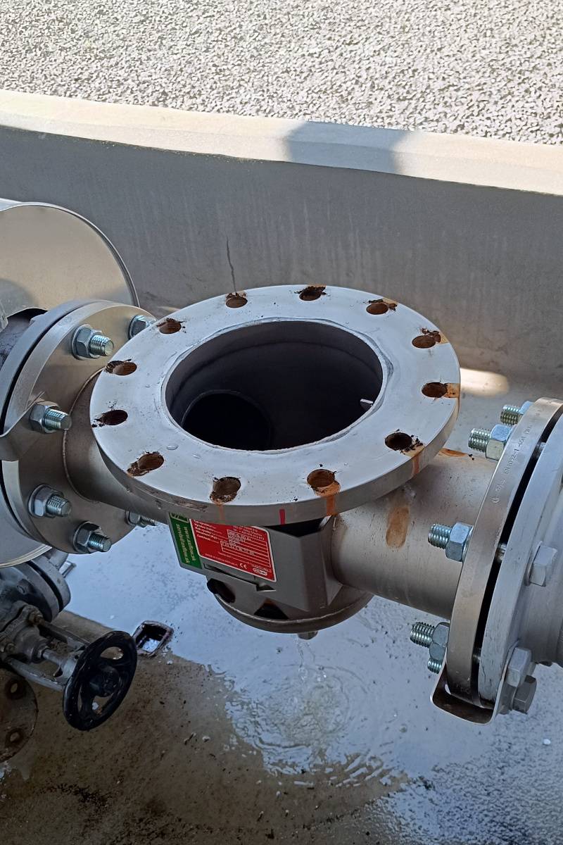 Klasický filtr by znamenal zanášení, tlakovou ztrátu a omezení průtoku – nepřijatelné pro danou technologii. Proto padla volba na magnetický filtr MSP-S 150 N, určený pro tlakové potrubí a tekuté směsi.
