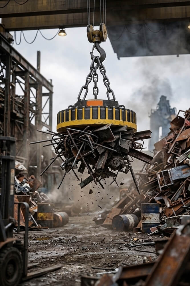 Šrotový elektromagnet EMG-SM: spolehlivé řešení pro hutě a šrotovny