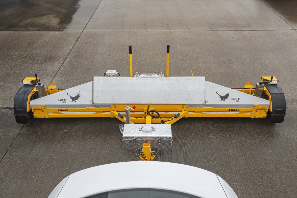 Magnetická metla MSA EAGLE = odolné a výkonné zařízení pro sběr kovových nečistot na letištích a rozsáhlých plochách.