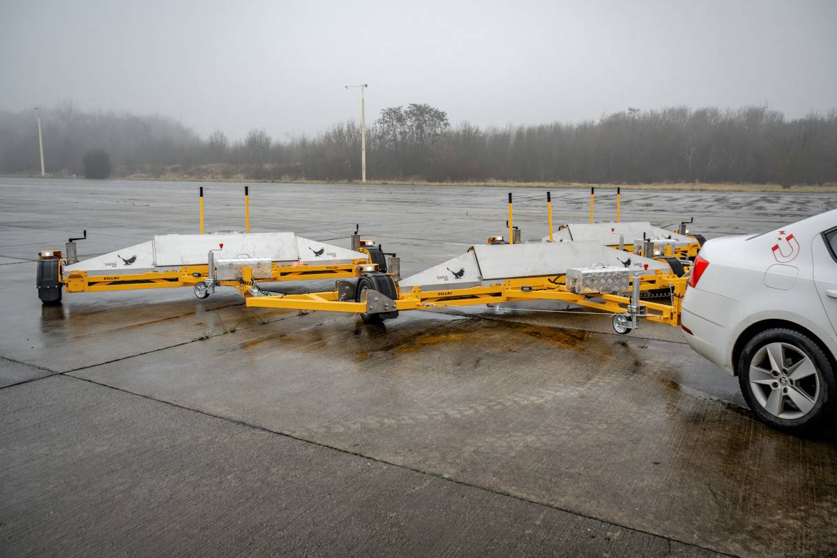 Magnetická metla MSA EAGLE - výkonné zařízení určené pro efektivní sběr kovových nečistot na letištích a rozsáhlých plochách.