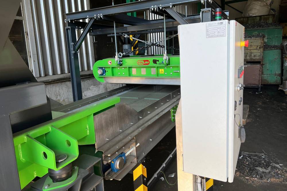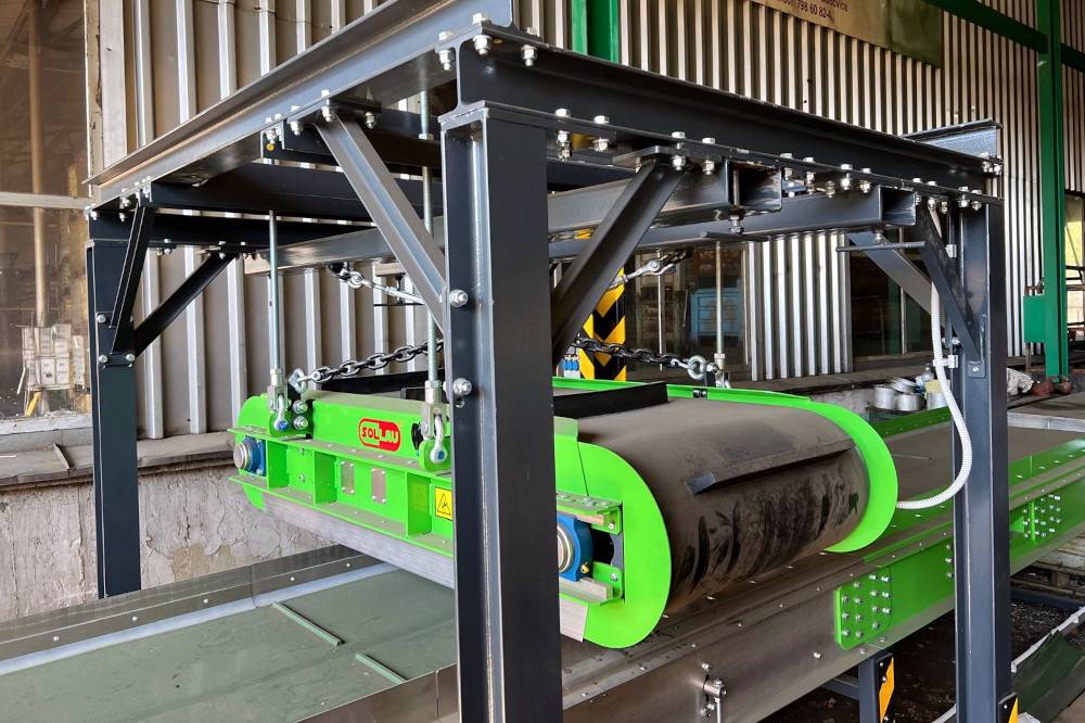Nejčastěji umísťujeme elektromagnetické separátory příčně nad dopravník.